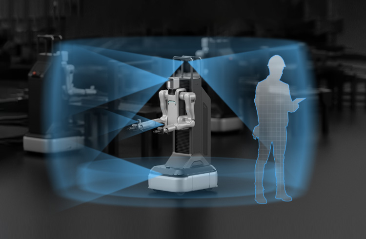 360°激光雷达+4颗AI视觉传感器+2颗六维力觉传感器等多传感器融合感知,实现毫秒级感知与智能避障。